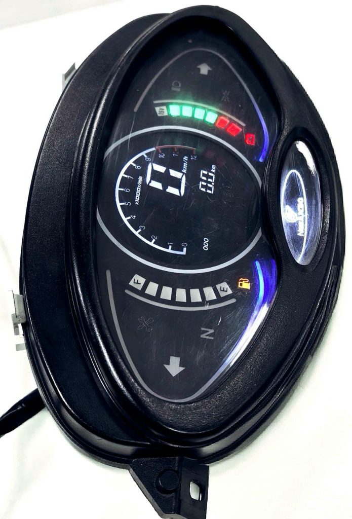 首页 / 仪表 / 摩托车仪表 / 液晶仪表 / 威武125 (YB022A) 仪表|液晶仪表 威武125 (YB022A) 作者呈羽 2025年11月17日2025年12月12日 参数 尺寸:195×120×55mm(长×宽×高) 速度:最大值199km/h 总里程:最大值为99999.9km 转速:最大值12000r/min 燃油显示:7格油位显示,低油量闪烁报警 电压显示:7格电压显示,低电压闪烁报警 状态灯颜色:左右转、空挡(绿色)远光(蓝色)保养提示(黄色) 档位显示:1~4档 Post Views: 111