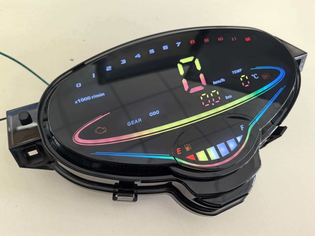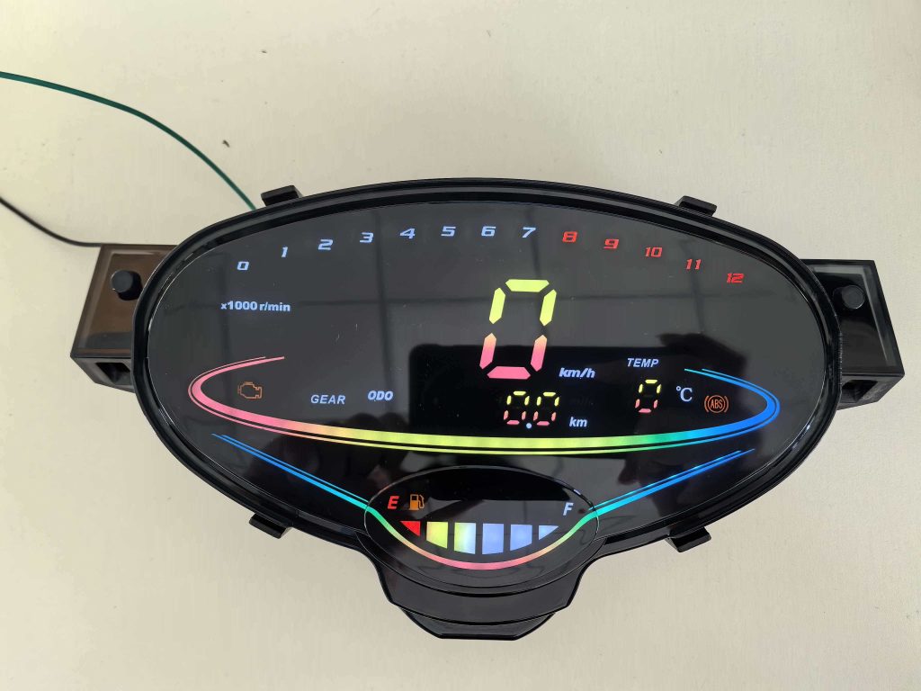 • 状态灯颜色:左转、右转、空挡(绿色)、远光(蓝色)、ABS、电喷(橙色)