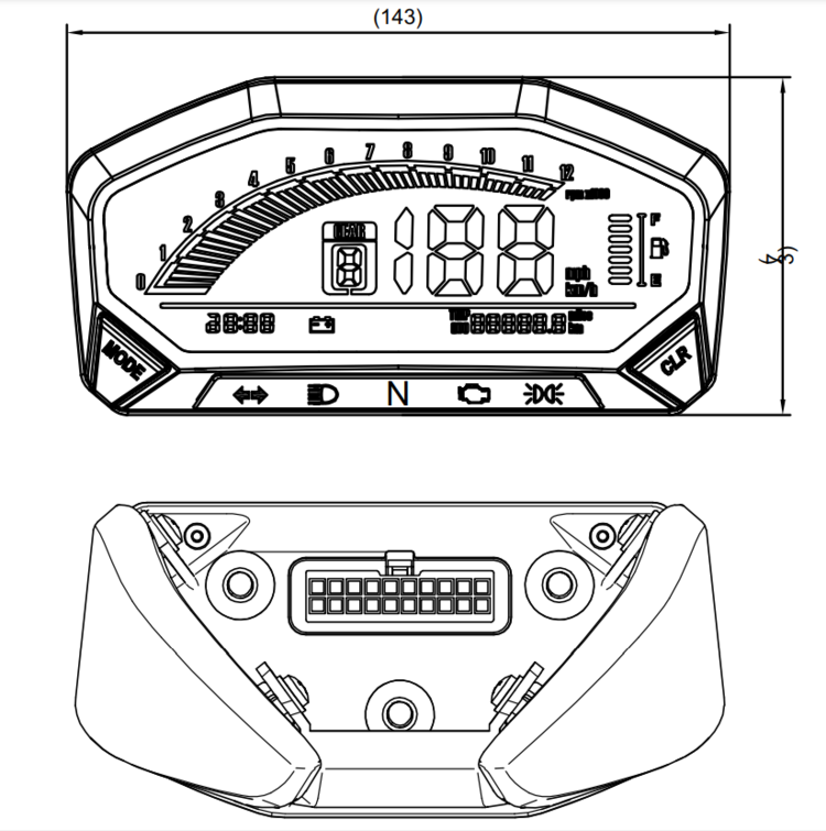 • 状态灯颜色:左右转、空挡(绿色)远光(蓝色)电喷(黄色)